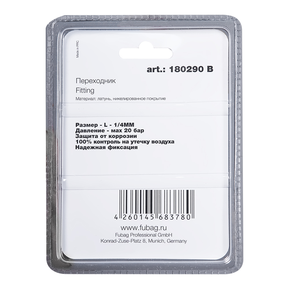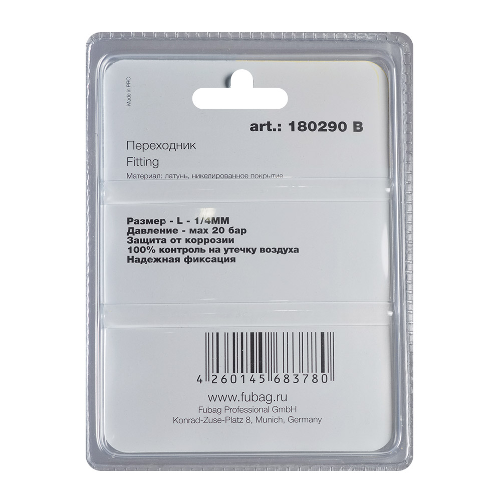 Характеристики FUBAG Переходник L - 1/4 дюйма MM, блистер 1 шт