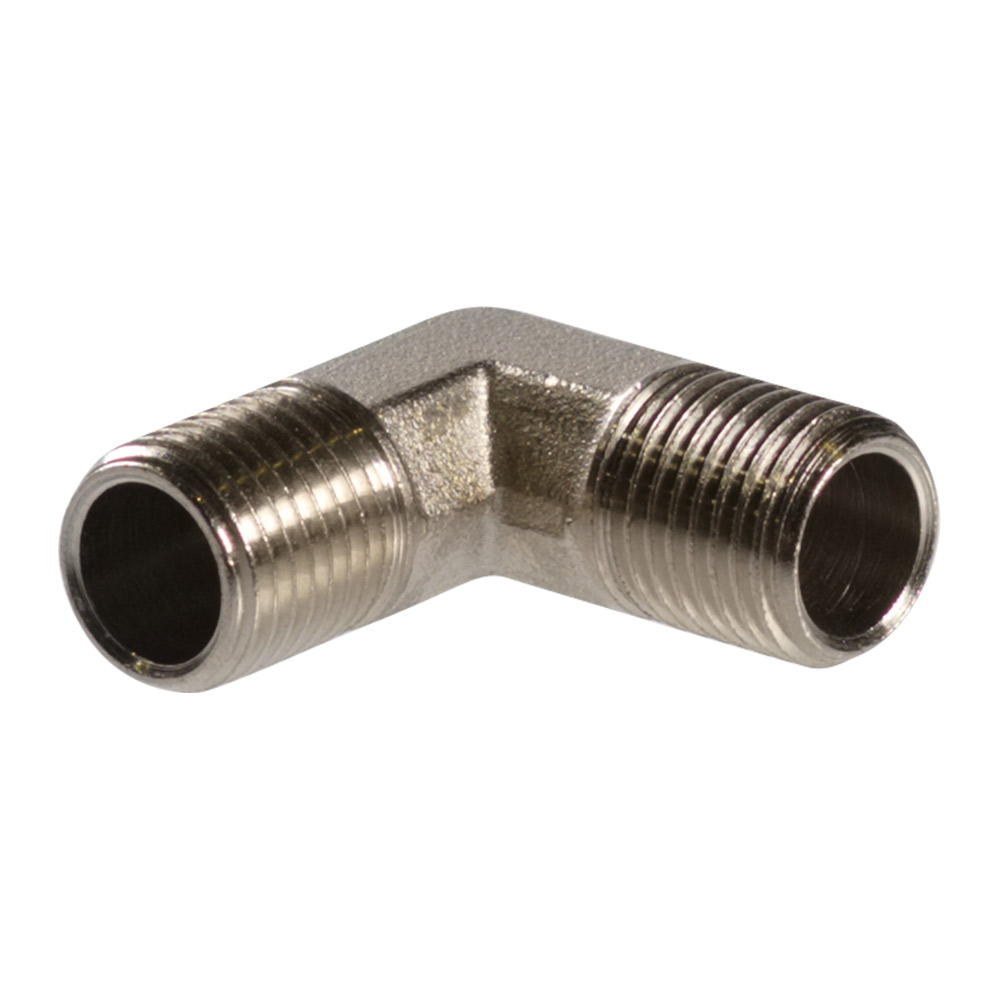 L-образный переходник (уголок) соединяет участки пневмосистемы под углом 90°. Крепление - резьба 1/4". Поставляется в блистере.